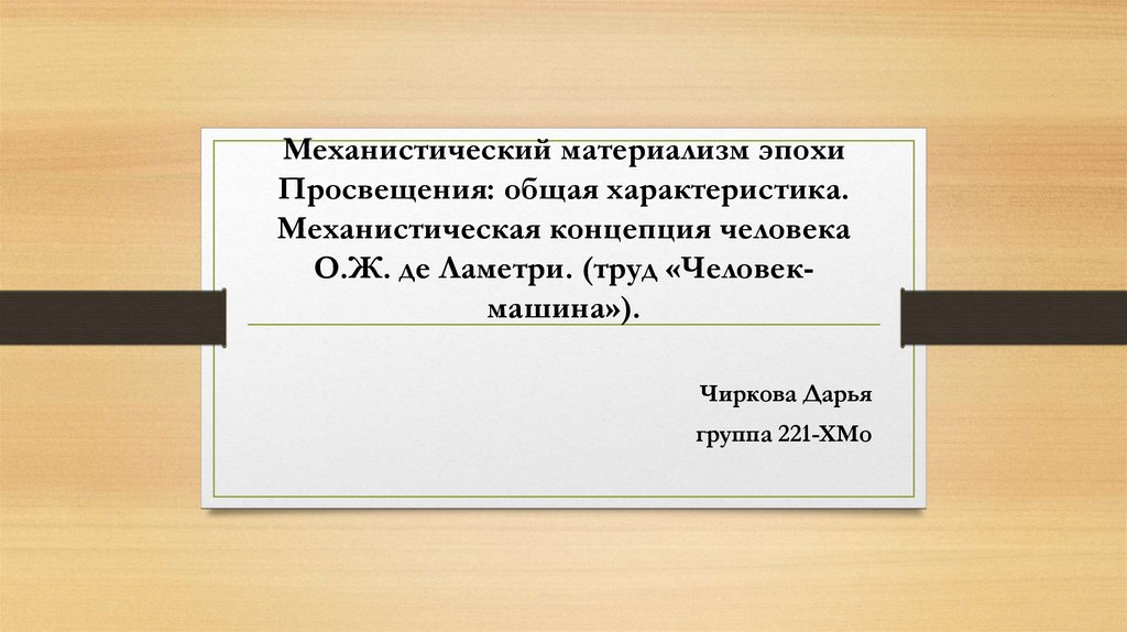 1. Механистический материализм эпохи Просвещения: общая характеристика. Механистическая концепция человека О.Ж. де Ламетри. (труд