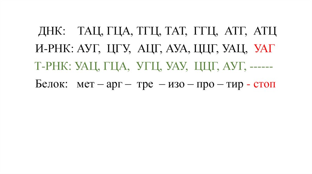 Белок: мет – арг – тре – изо – про – тир - стоп