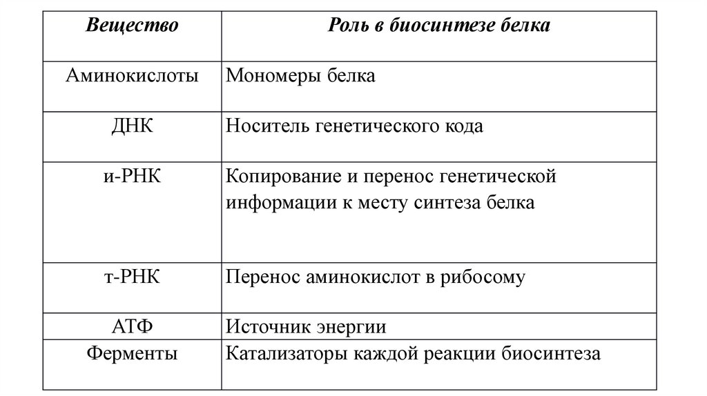 Роль в биосинтезе белка