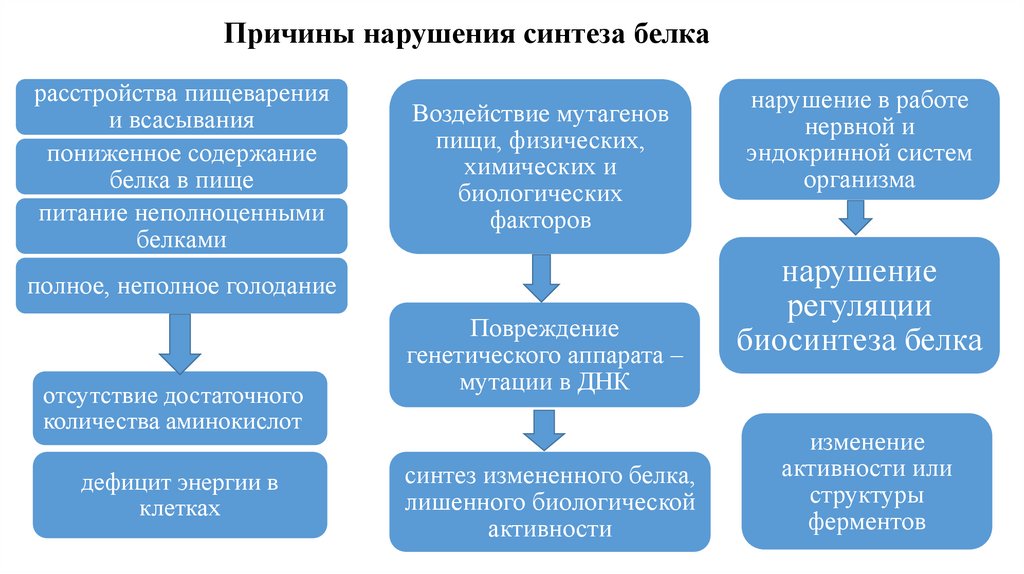 Причины нарушения синтеза белкарасстройства пищеварения
