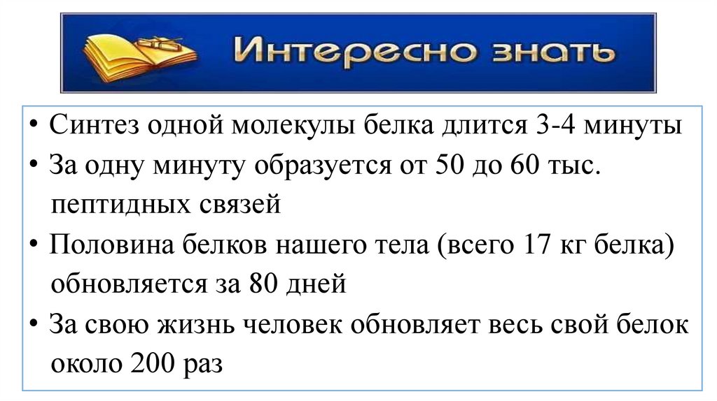 • За свою жизнь человек обновляет весь свой белок