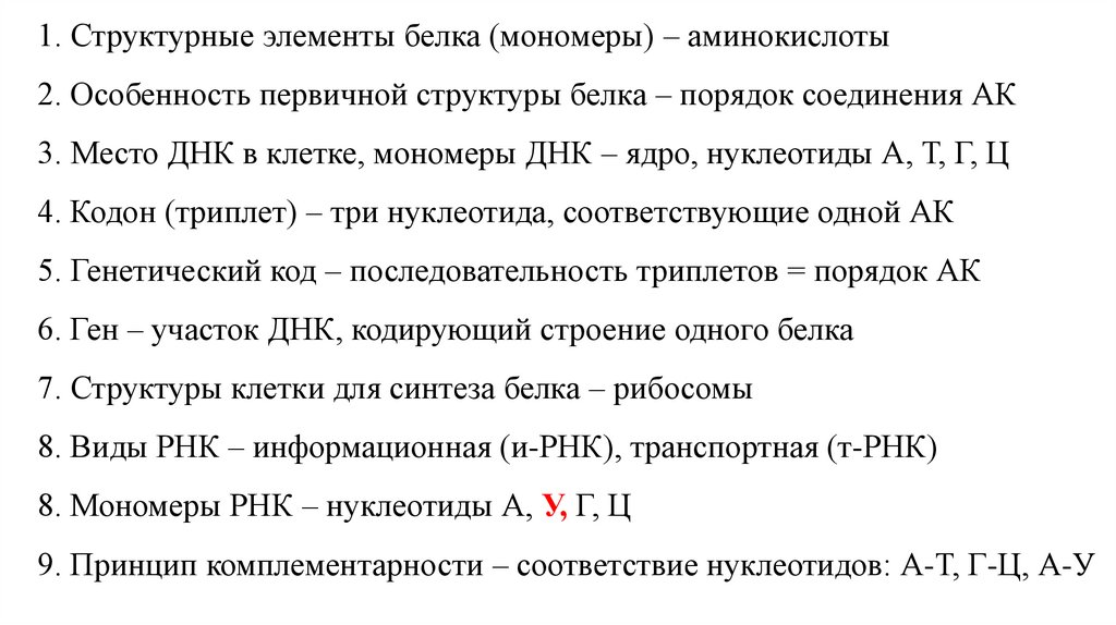 9. Принцип комплементарности – соответствие нуклеотидов: А-Т, Г-Ц, А-У