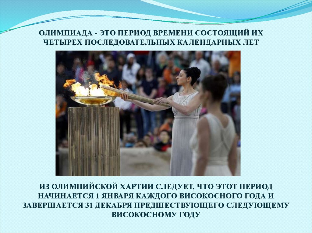 ОЛИМПИАДА - ЭТО ПЕРИОД ВРЕМЕНИ СОСТОЯЩИЙ ИХЧЕТЫРЕХ ПОСЛЕДОВАТЕЛЬНЫХ КАЛЕНДАРНЫХ ЛЕТ