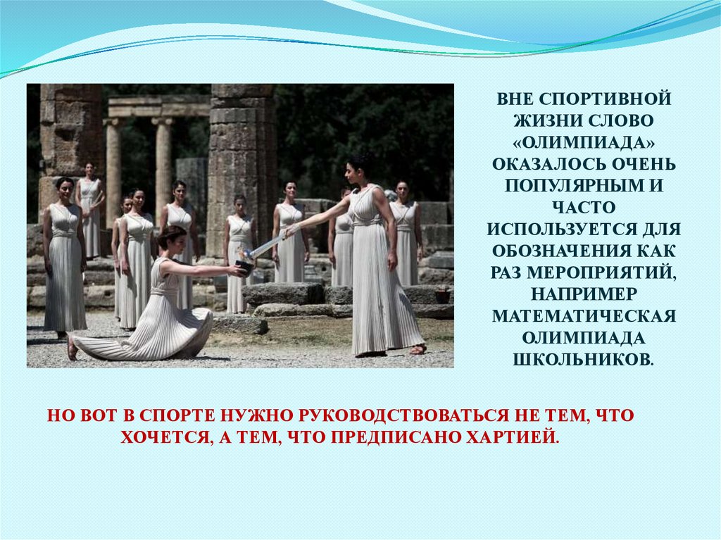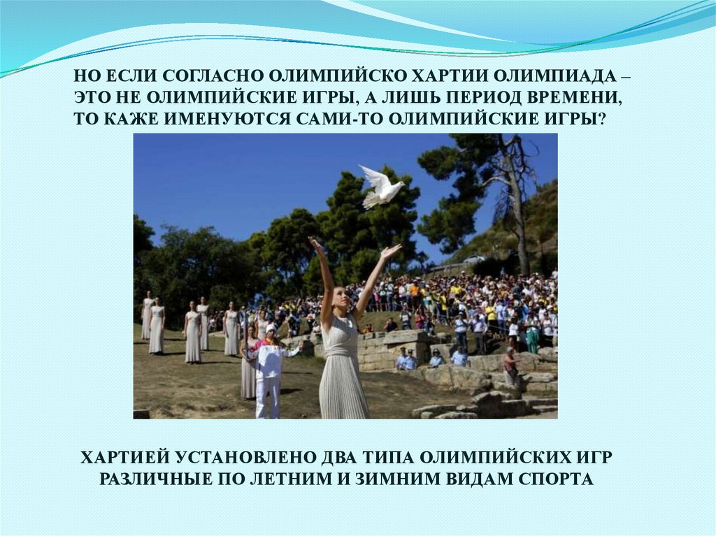 НО ЕСЛИ СОГЛАСНО ОЛИМПИЙСКО ХАРТИИ ОЛИМПИАДА –ЭТО НЕ ОЛИМПИЙСКИЕ ИГРЫ, А ЛИШЬ ПЕРИОД ВРЕМЕНИ,