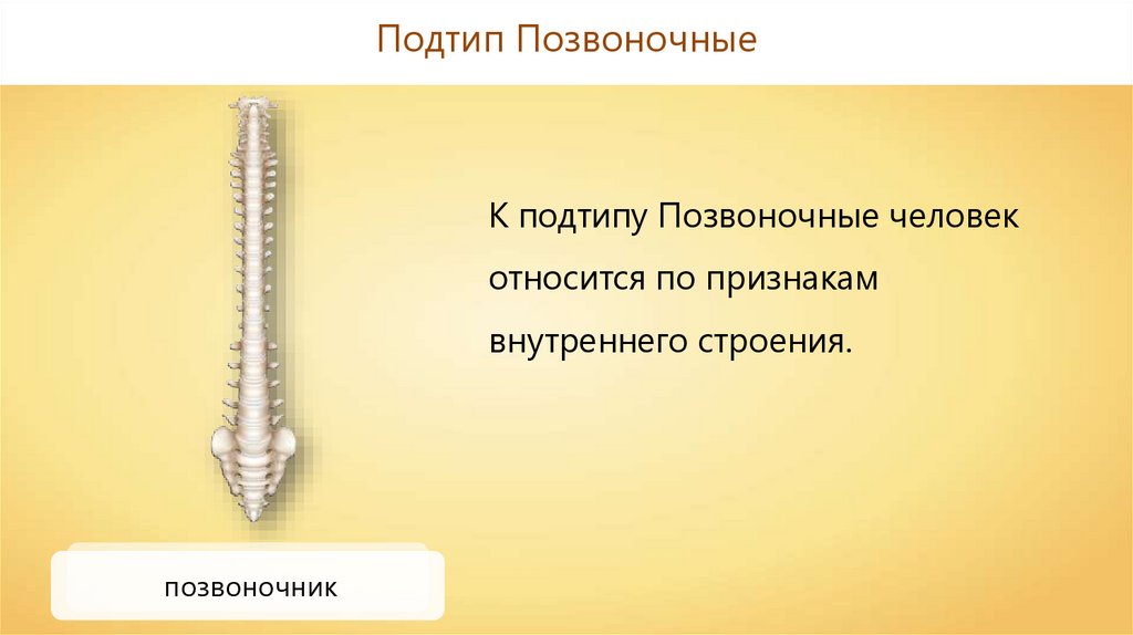 Подтип ПозвоночныеК подтипу Позвоночные человек