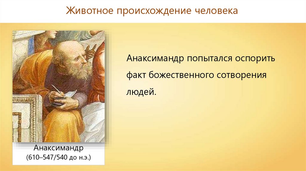 Животное происхождение человекаАнаксимандр попытался оспорить