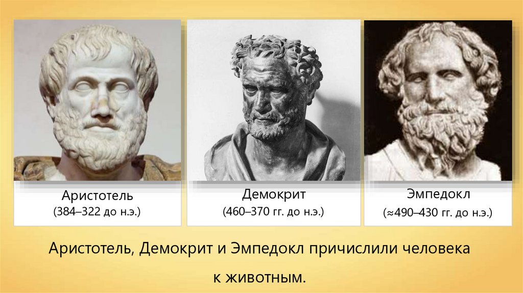 Аристотель, Демокрит и Эмпедокл причислили человека