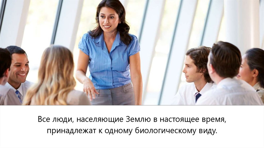 Все люди, населяющие Землю в настоящее время,принадлежат к одному биологическому виду.