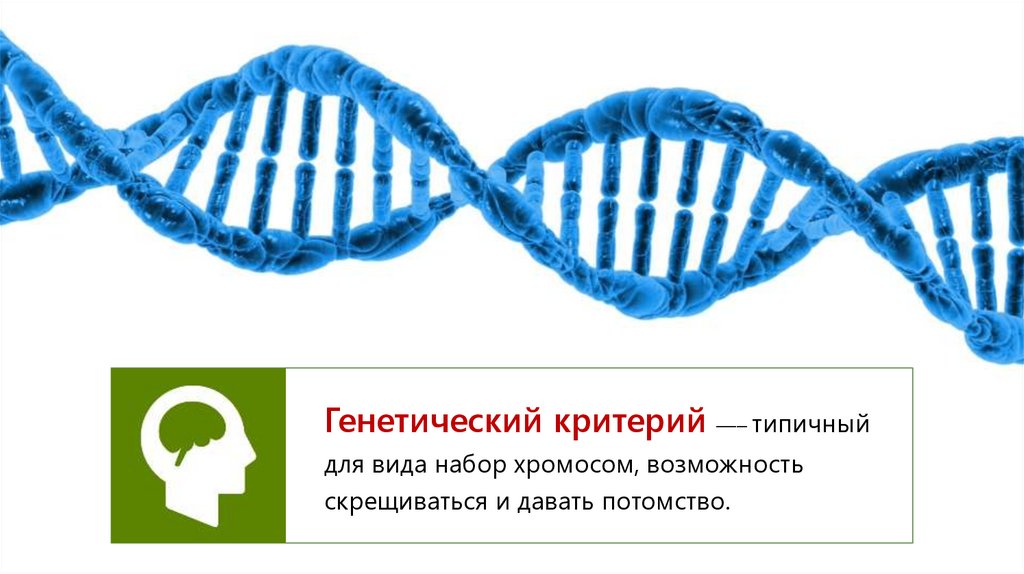 Генетический критерий —– типичныйдля вида набор хромосом, возможность