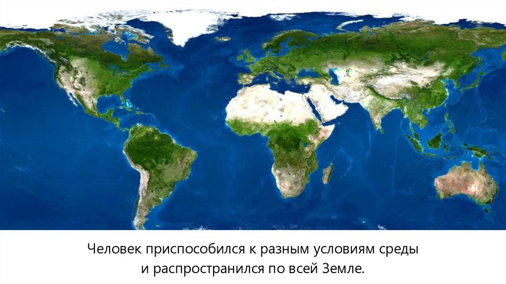 Человек приспособился к разным условиям средыи распространился по всей Земле.