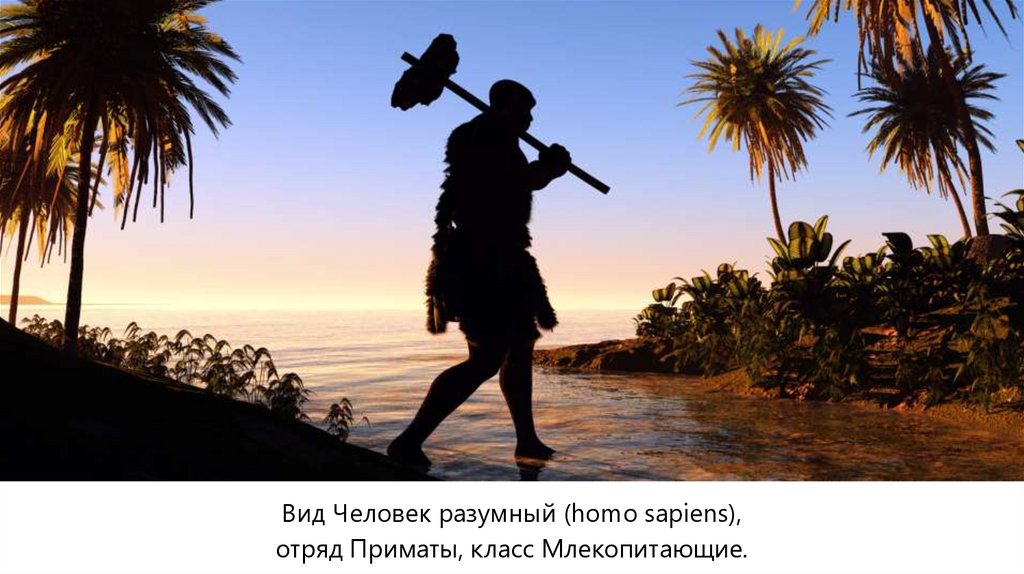 Вид Человек разумный (homo sapiens),отряд Приматы, класс Млекопитающие.