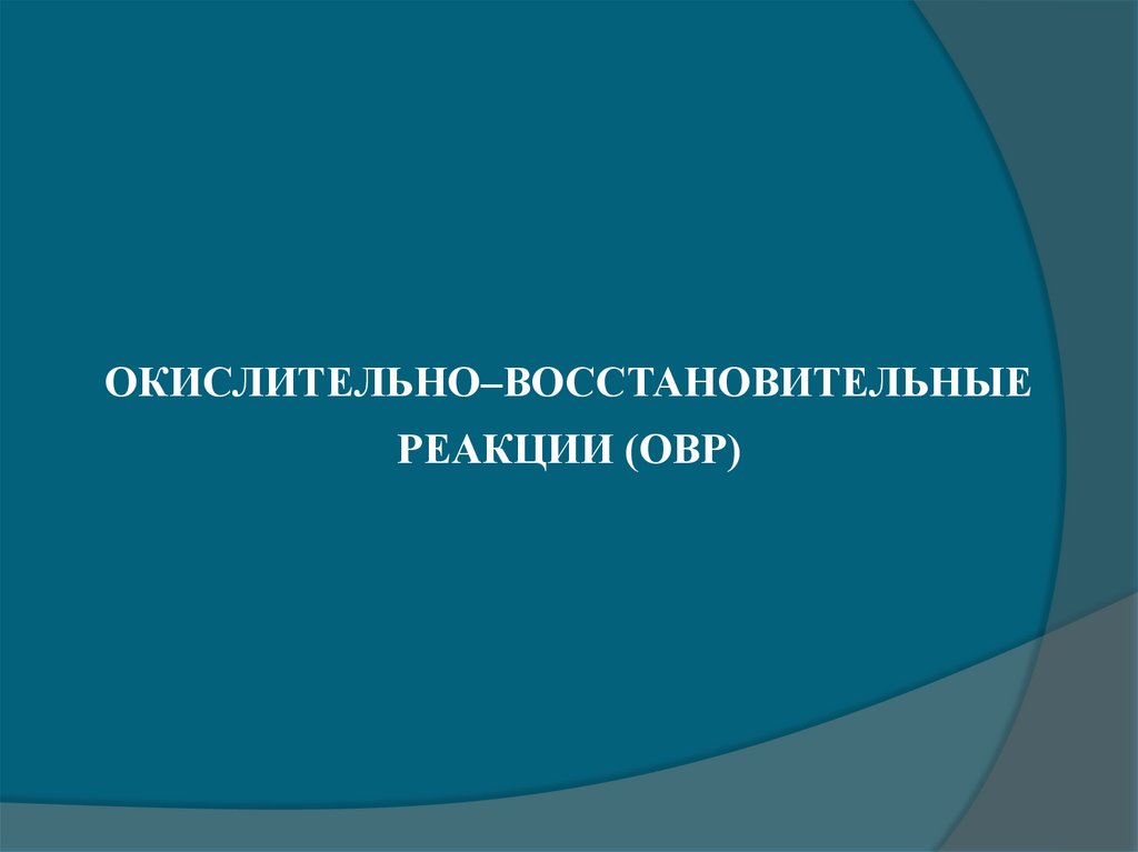 1. ОКИСЛИТЕЛЬНО–ВОССТАНОВИТЕЛЬНЫЕ РЕАКЦИИ (ОВР)