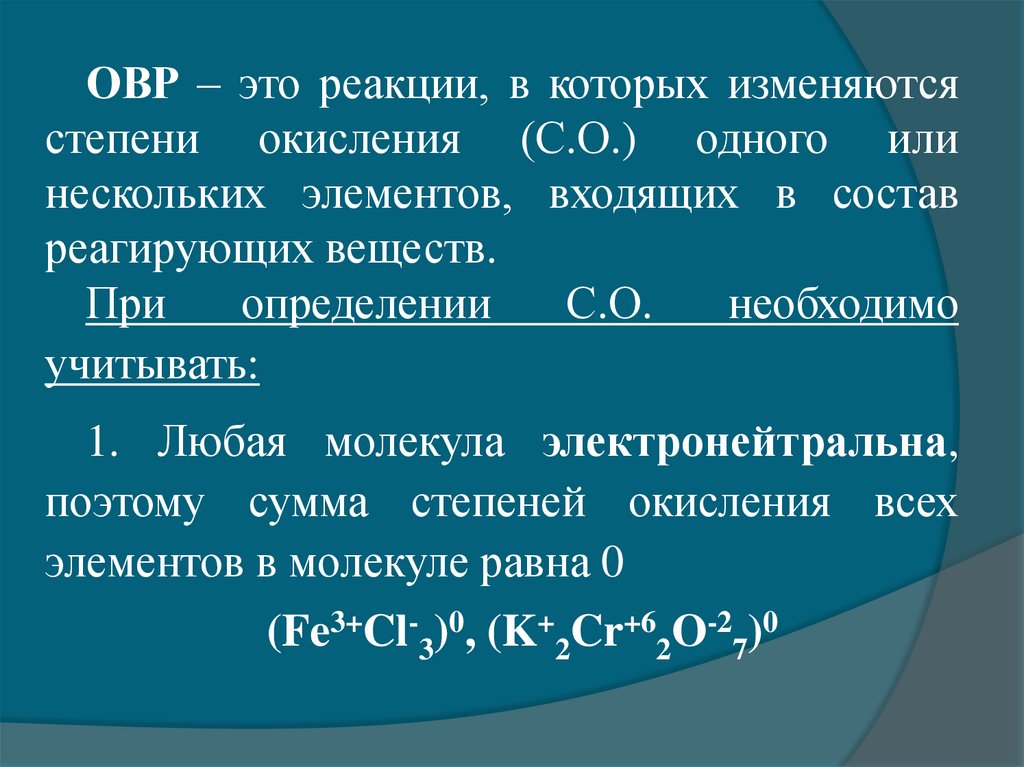 ОВР – это реакции, в которых изменяютсястепени окисления (С.О.) одного или