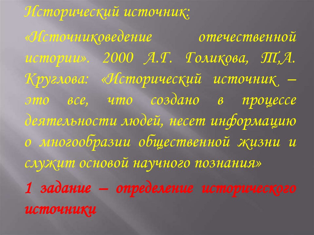 Исторический источник:«Источниковедение