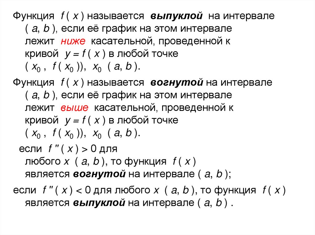 Функция f ( x ) называется выпуклой на интервале( a, b ), если её график на этом интервале