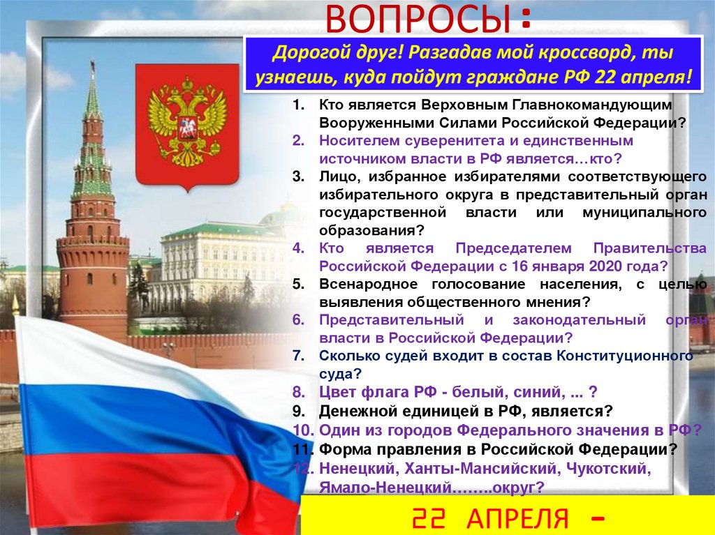 узнаешь, куда пойдут граждане РФ 22 апреля!