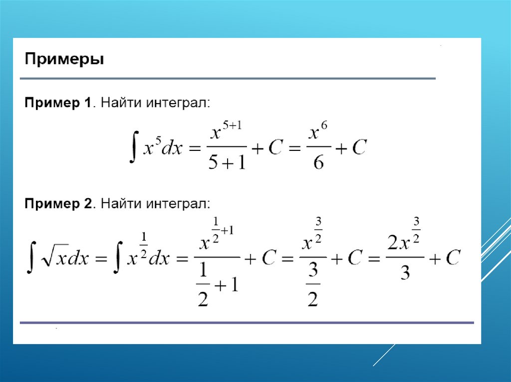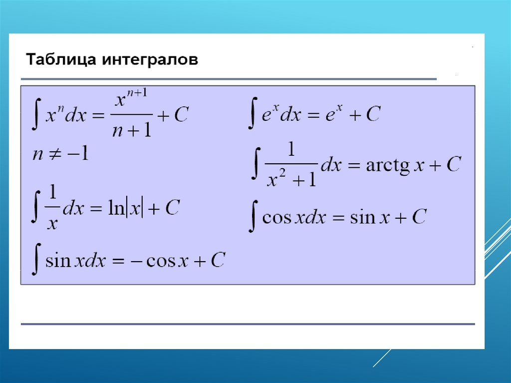 Первообразная. Правило нахождения первообразной. Неопределенный интеграл