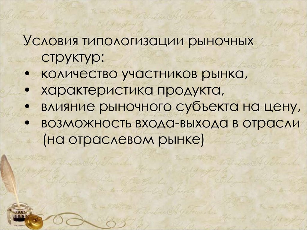 идеальные → совершенная конкуренция имонополия – их трудно встретить в реальной