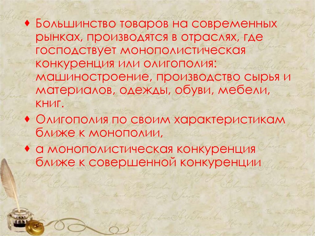 Большинство товаров на современныхрынках, производятся в отраслях, где