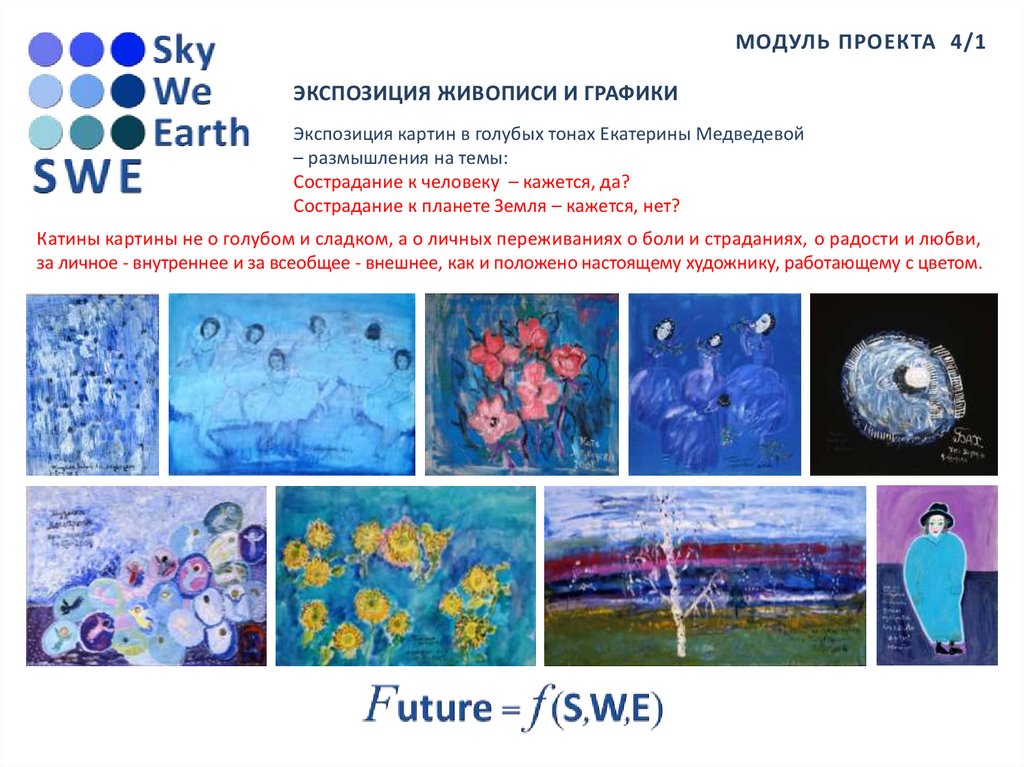 Экспозиция картин в голубых тонах Екатерины Медведевой