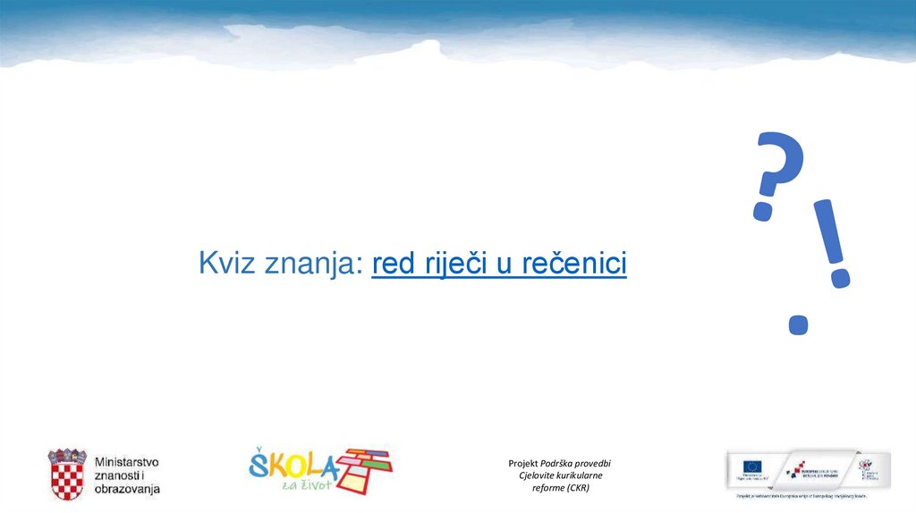 Kviz znanja: red riječi u rečeniciProjekt Podrška provedbi