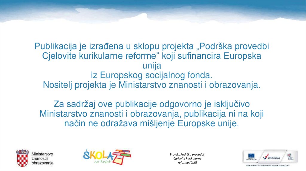 Publikacija je izrađena u sklopu projekta „Podrška provedbiCjelovite kurikularne reforme” koji sufinancira Europska