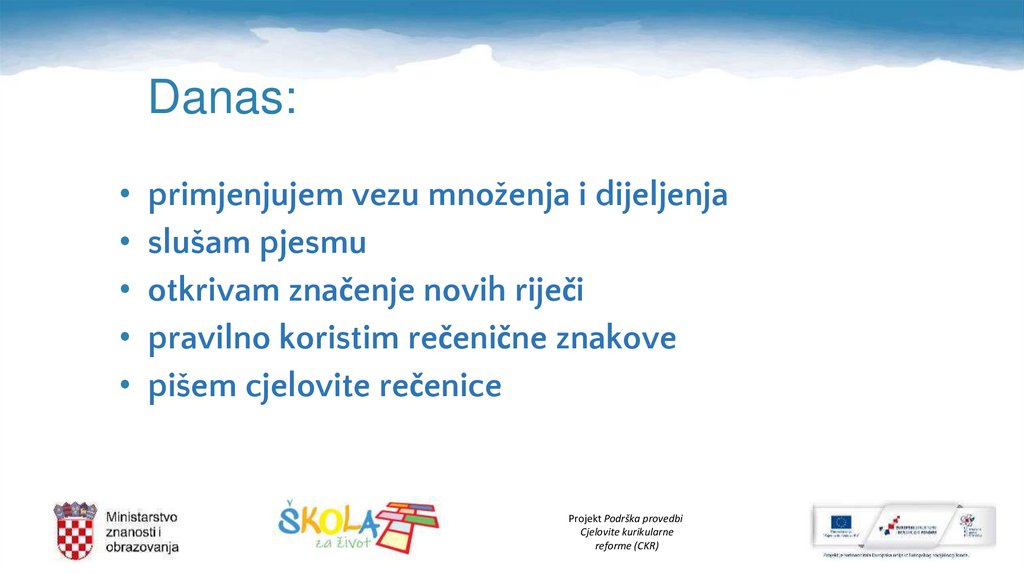 Nositelj projekta je Ministarstvo znanosti i obrazovanja.