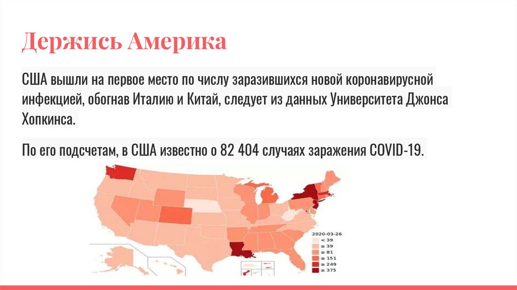 Держись АмерикаСША вышли на первое место по числу заразившихся новой коронавирусной
