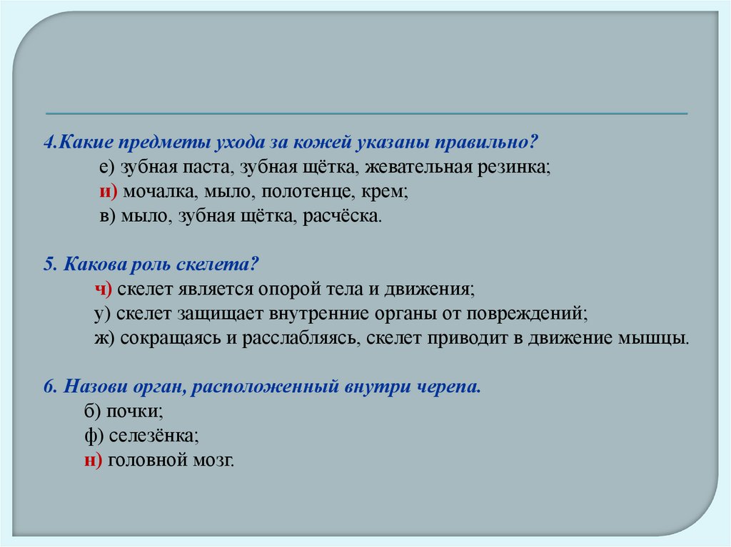 4.Какие предметы ухода за кожей указаны правильно?е) зубная паста, зубная щётка, жевательная резинка;