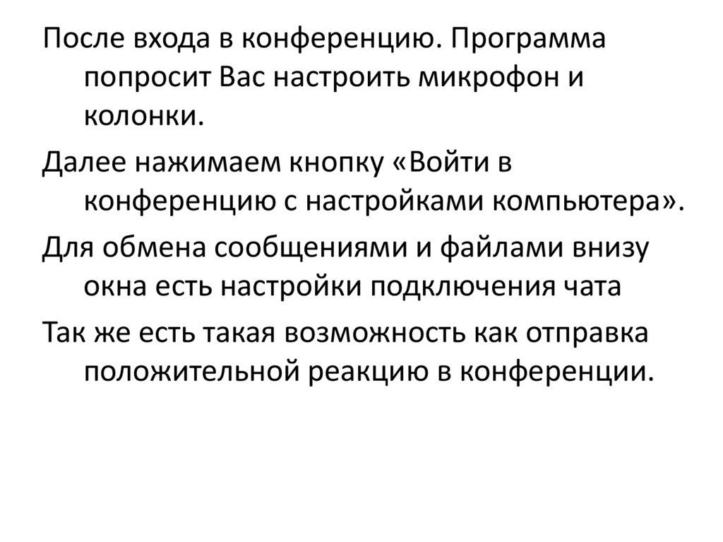 После входа в конференцию. Программапопросит Вас настроить микрофон и