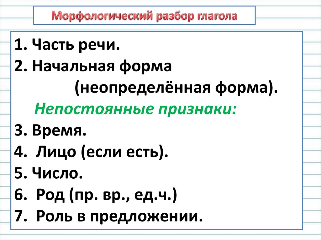 1. Часть речи.2. Начальная форма