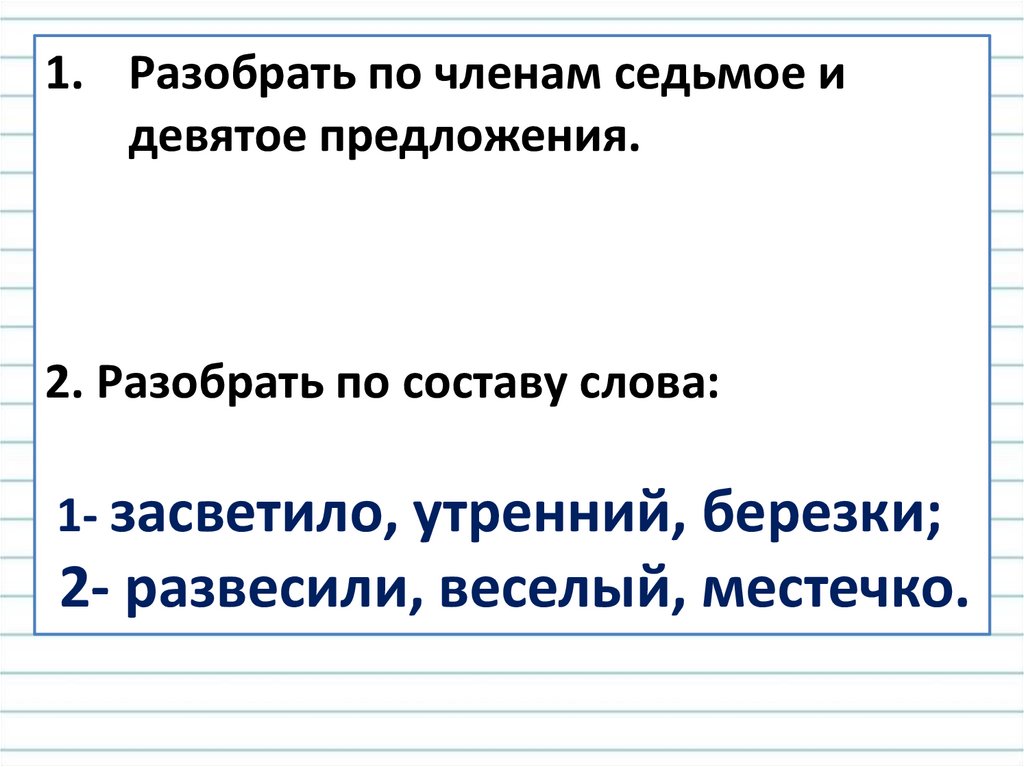 1. Разобрать по членам седьмое идевятое предложения.