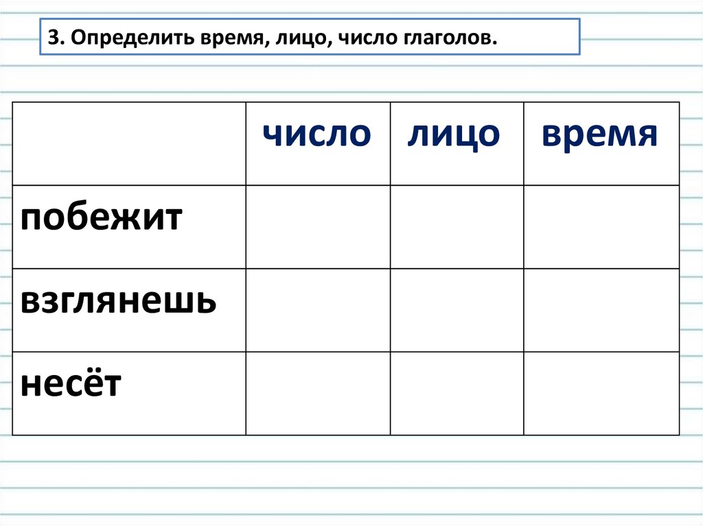 3. Определить время, лицо, число глаголов.число лицо время