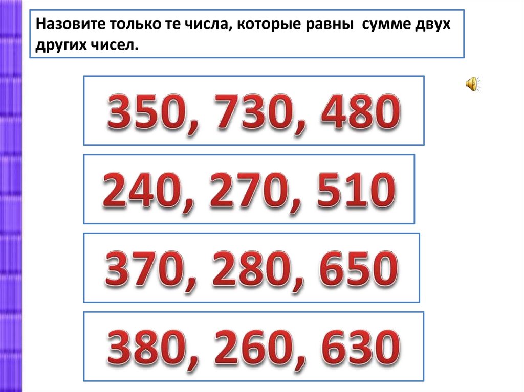 Назовите только те числа, которые равны сумме двухдругих чисел.