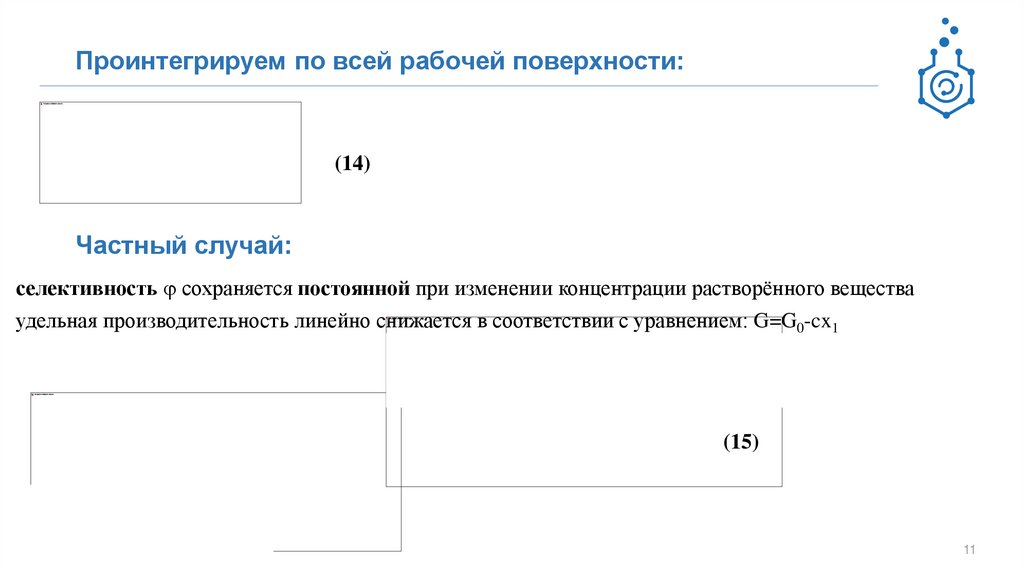 — массовая доля вещества в пермеате, характеризуемом расходом W, т.е. средняя концентрация на участке
