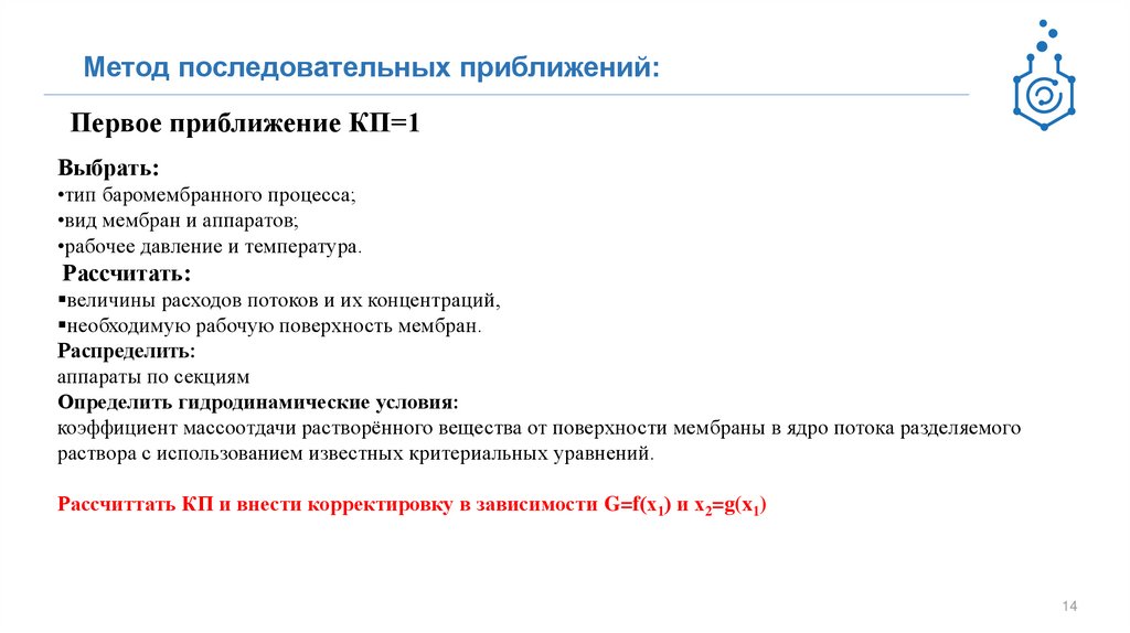 Задача:определение рабочей поверхности мембран, всех потоков и концентраций входящих в