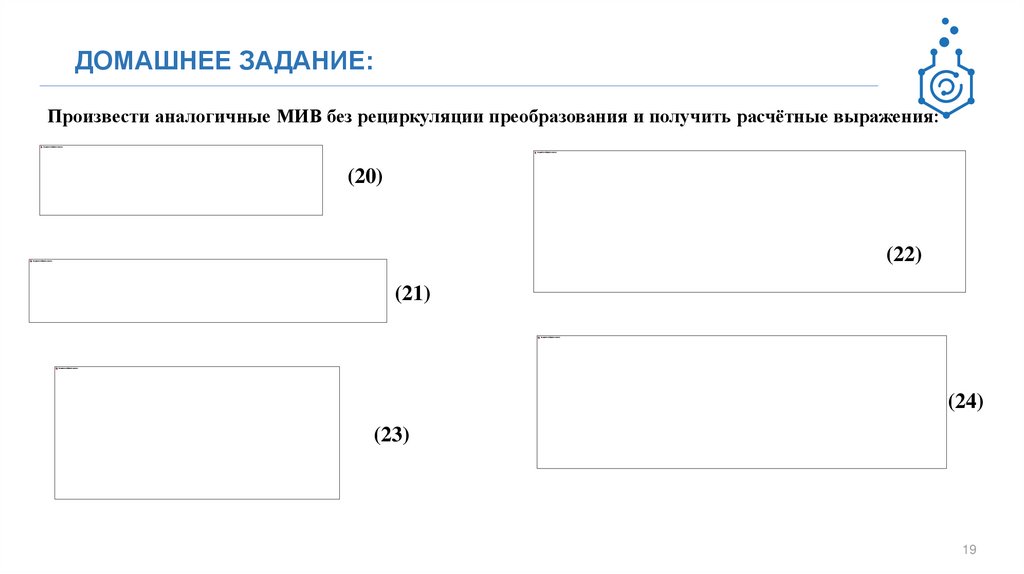 ДОМАШНЕЕ ЗАДАНИЕ:Произвести аналогичные МИВ без рециркуляции преобразования и получить расчётные выражения: