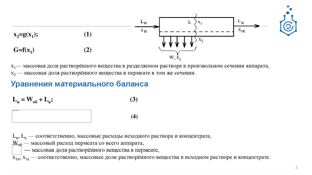 х2 — массовая доля растворённого вещества в пермеате в том же сечении.