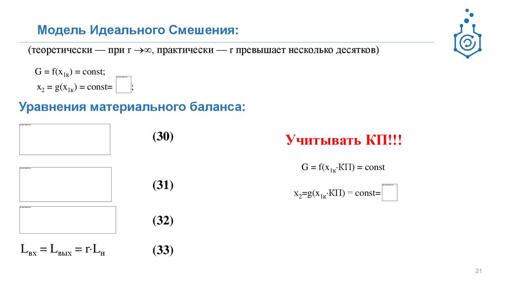 Модель Идеального Смешения:(теоретически — при r , практически — r превышает несколько десятков)