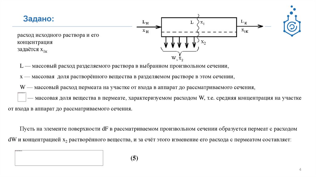 dW и концентрацией x2 растворённого вещества, и за счёт этого изменение его расхода с пермеатом составляет: