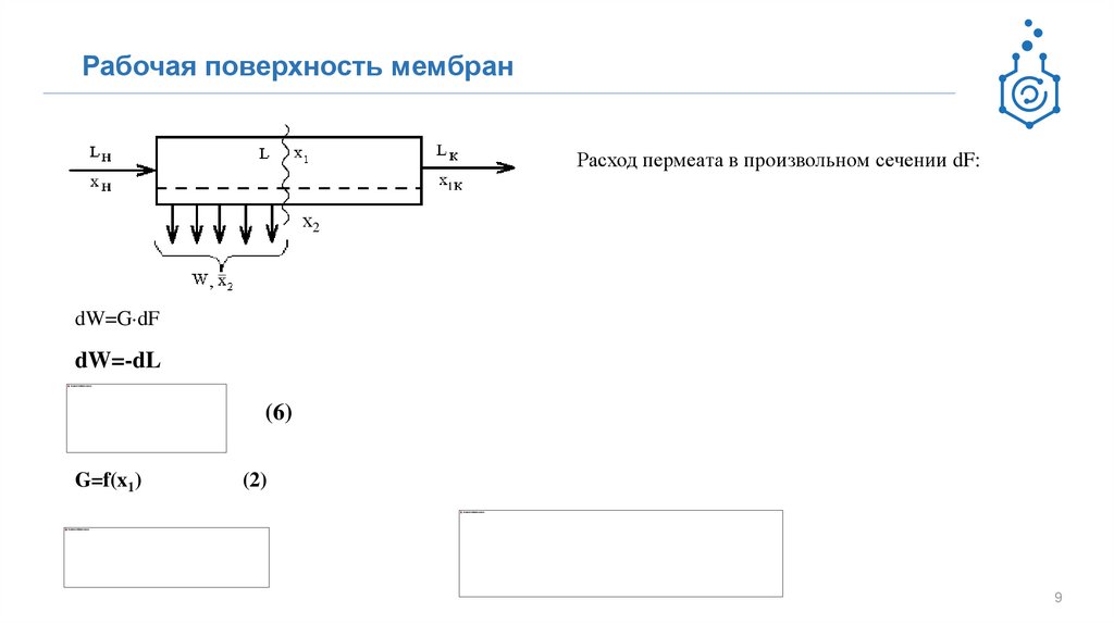 Рабочая поверхность мембранРасход пермеата в произвольном сечении dF: