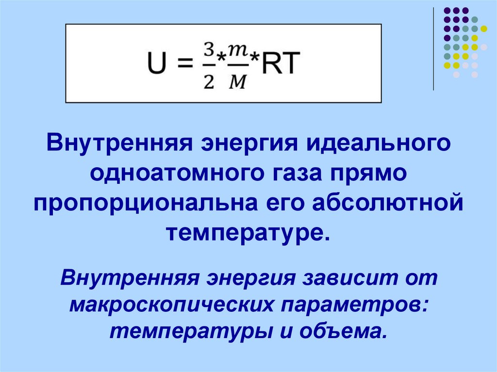 Внутренняя энергия идеальногоодноатомного газа прямо