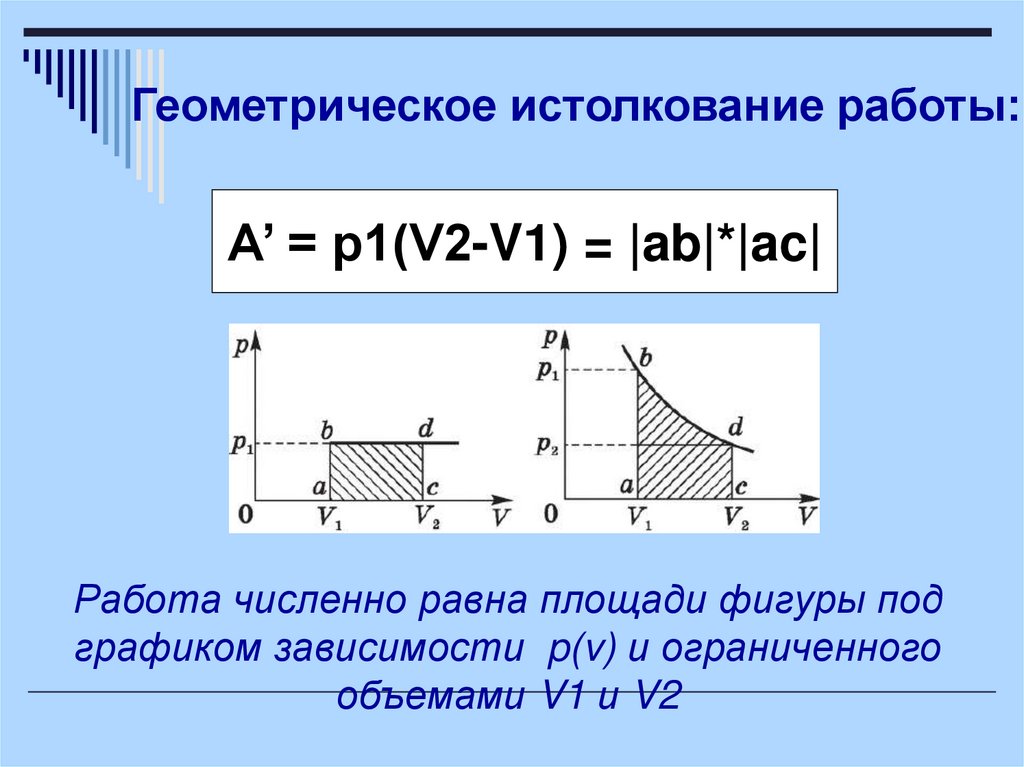 Геометрическое истолкование работы:A’ = p1(V2-V1) = |ab|*|ac|