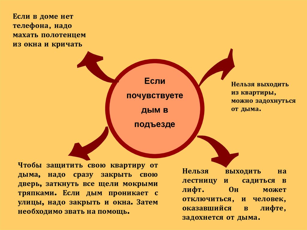 13. Если горящая квартира расположена под вашей, или горит на лестнице под вашей квартирой, надо покинуть квартиру, но только если