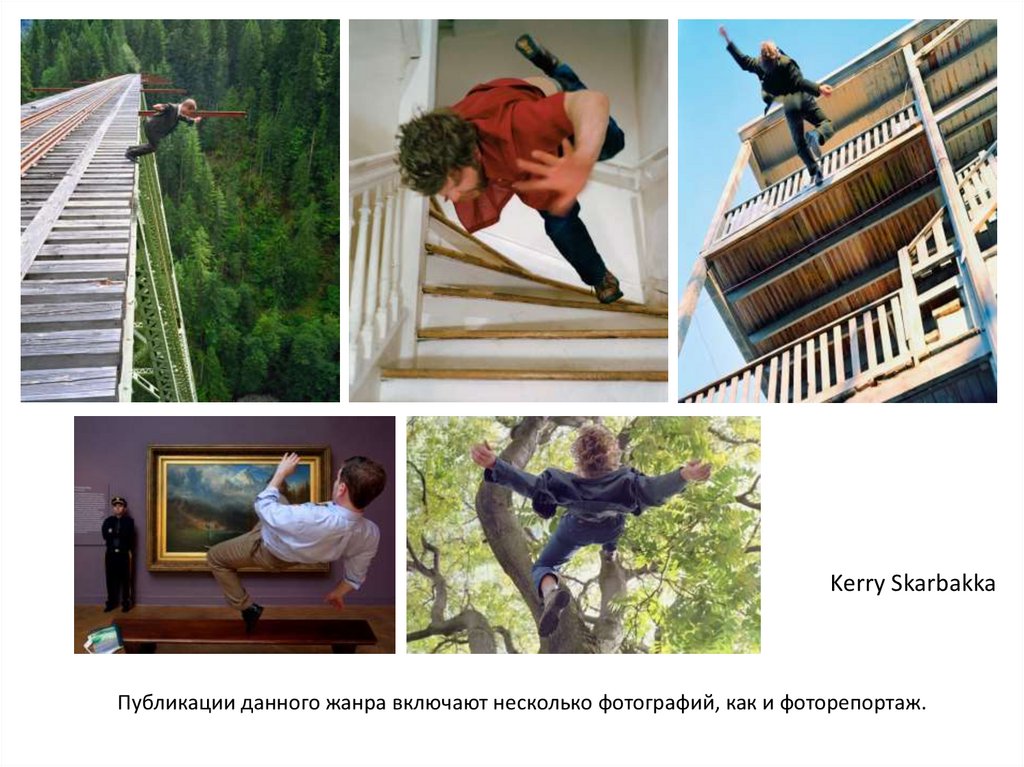 Kerry SkarbakkaПубликации данного жанра включают несколько фотографий, как и фоторепортаж.