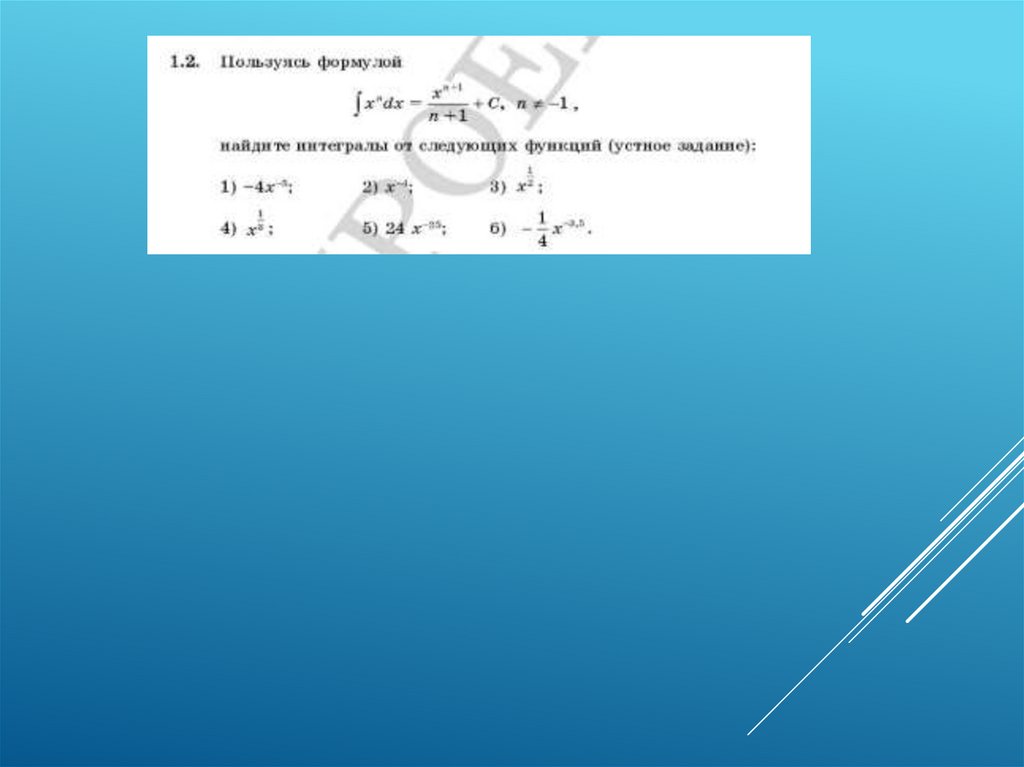 Первообразная. Правило нахождения первообразной. Неопределенный интеграл