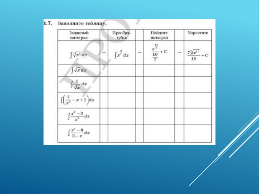 Первообразная. Правило нахождения первообразной. Неопределенный интеграл
