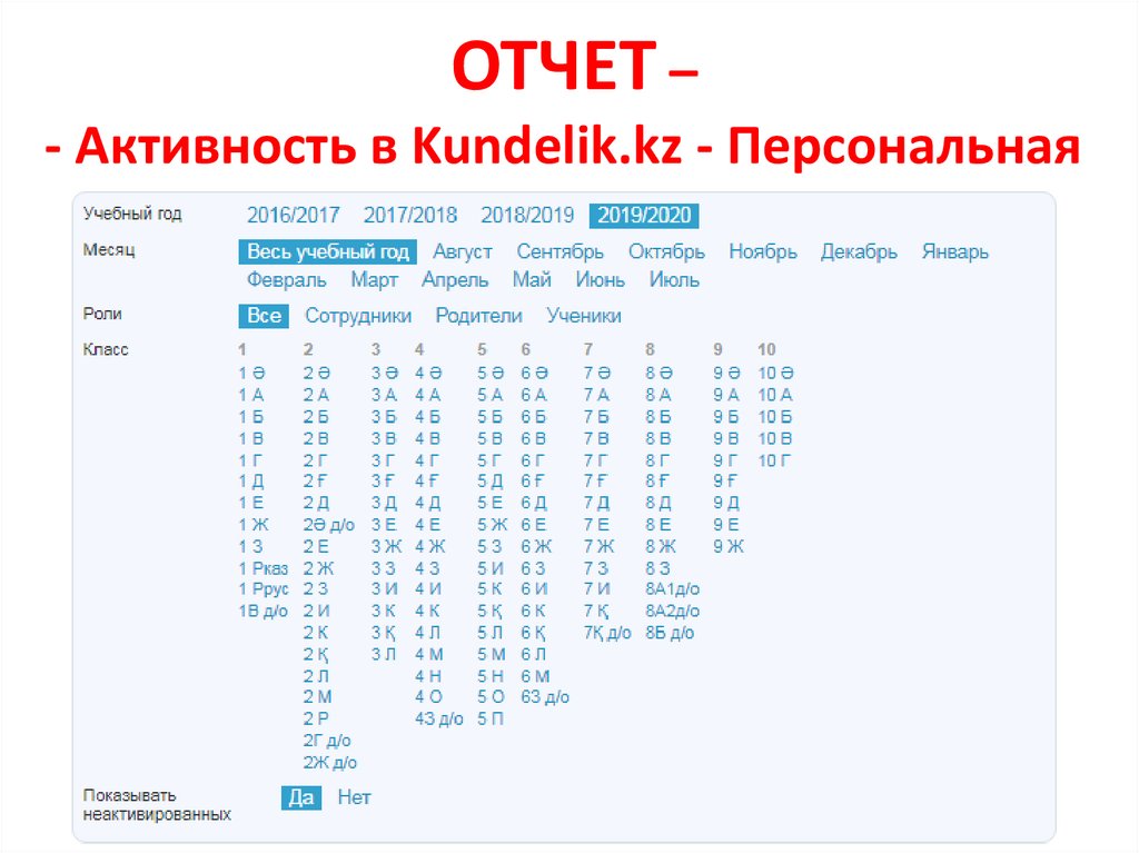 ОТЧЕТ –- Активность в Kundelik.kz - Персональная