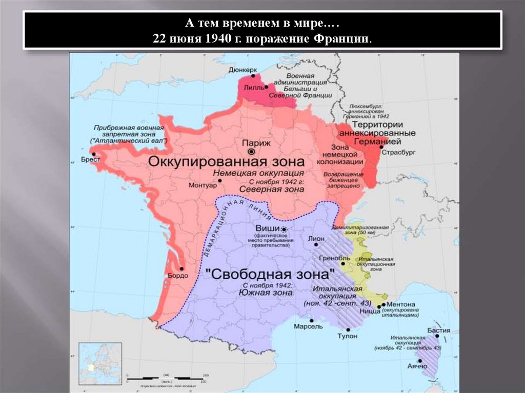 А тем временем в мире….22 июня 1940 г. поражение Франции.