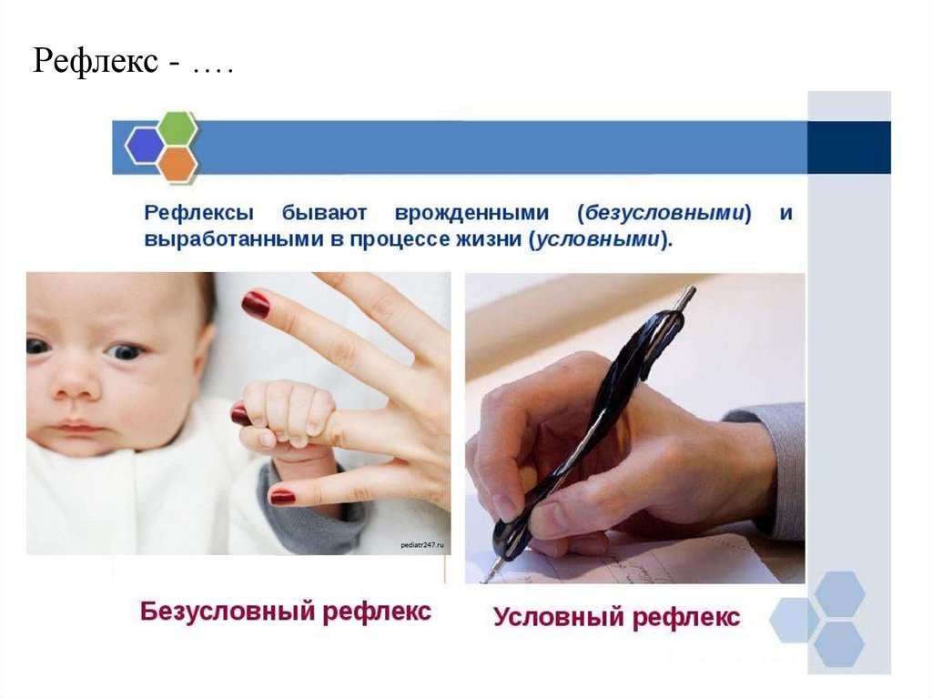• вегетативные рефлексы (сосудодвигательные, пищевые, дыхательные идр.)